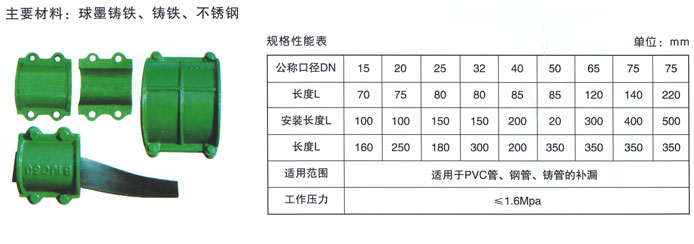 適用管道 球 墨鑄鐵管,鋼管,PE管、PVC管 PPR管。