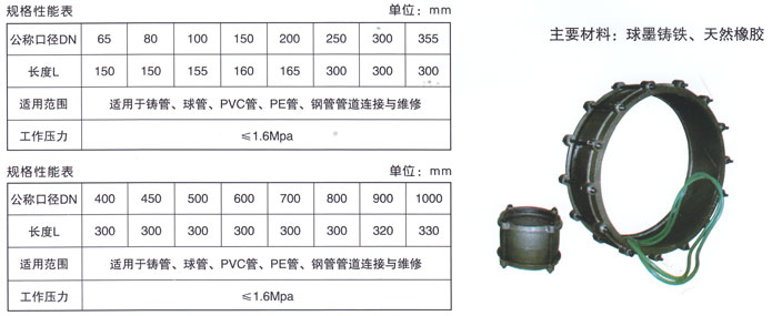 適用范圍:適用于鑄管、球墨管、PVC管、PE管。